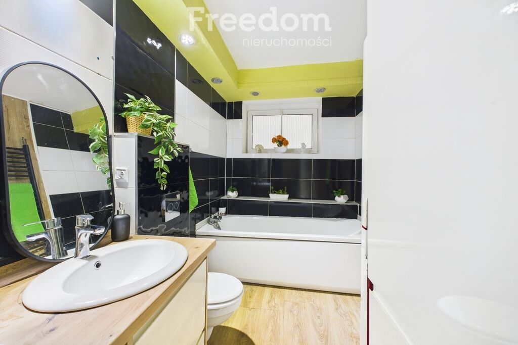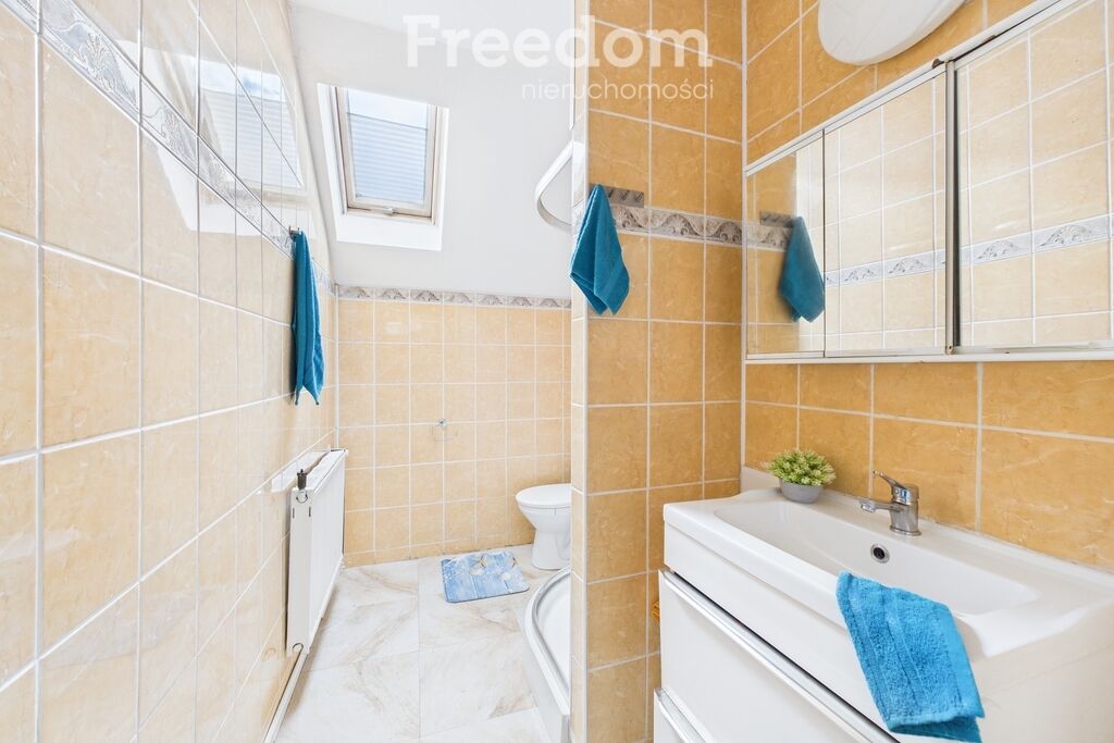 Na piętrze dostępna jest również druga łazienka, wyposażona w